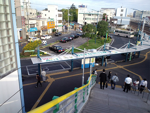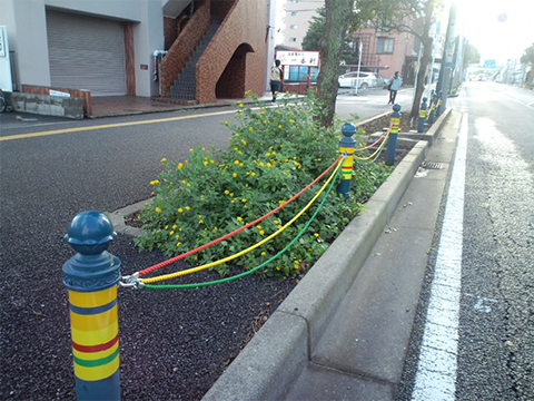 2年前には、バスシェルター屋根及びエレベーター外壁へのラッピング、フクアリまでの路面へ案内標示シート、市民協働による3色ロープの取り付けが行われました。