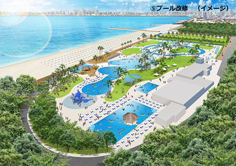 特に稲毛海浜公園は「都市型ビーチ」として、キャンプ施設や温浴施設、バーベキュー場が新設されるほか、プール施設も海を望めるプールとして新装オープンの予定。(明年の春以降、2020年までに順次オープンの見込みです。)