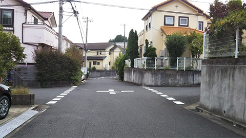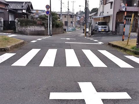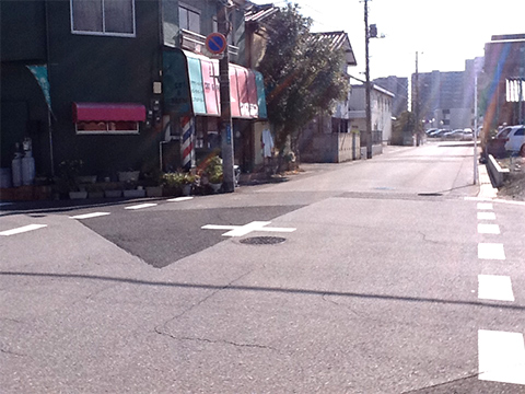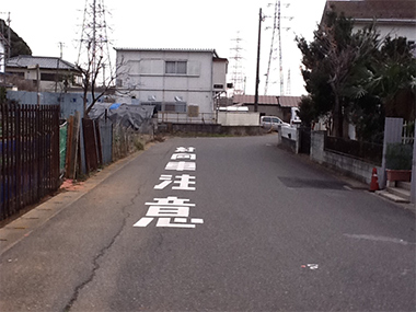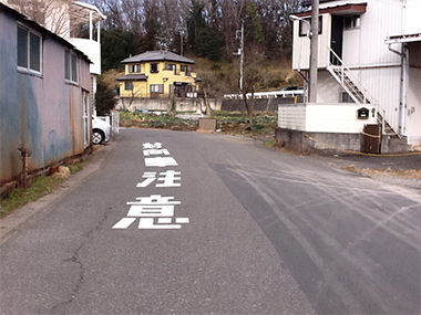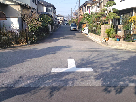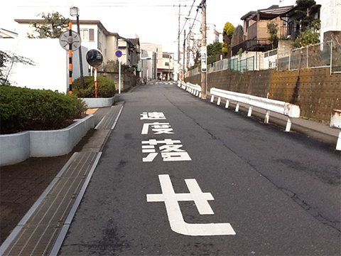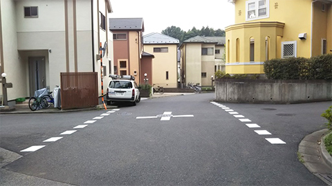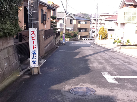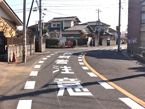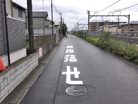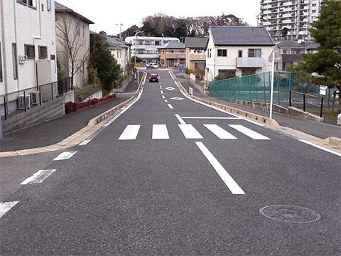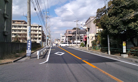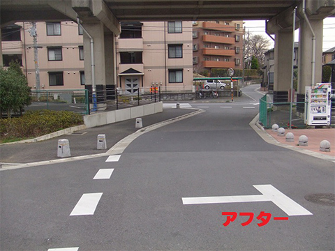 (※センターラインを消すことで、行き交う車が速度を緩めるようになりました。)