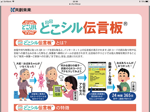 その結果、昨年7月より、認知症よる徘徊症状が見られる高齢者の安否情報等を関係者間で共有する「高齢者保護情報共有サービス」が始まりました。写真の通り、QRコードが印刷されたラベルシール(一人当たり40枚)とICTサービス(どこシル伝言板)を用いた事業です。認知症サポーター等を含めた市民の協力を促進し、地域における認知症高齢者の見守り体制強化等を図るものです。是非とも、ご活用ください!