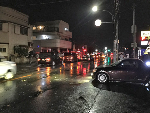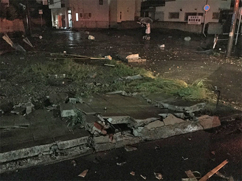 発生直後に地域の方から連絡を頂き、21時50分頃、現場に駆けつけた際には消防隊も来ておらず、電柱が倒れ、信号機も止まり、道路には屋根瓦が散乱するといった惨状でありました。訪れた数軒のお宅では、「急激に風が強くなり、いったい何が起こったのか?」と口々におっしゃっておられました。皆さん命には別状はなく安堵した一方で、自然災害の恐ろしさを改めて痛感致しました。
