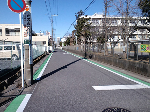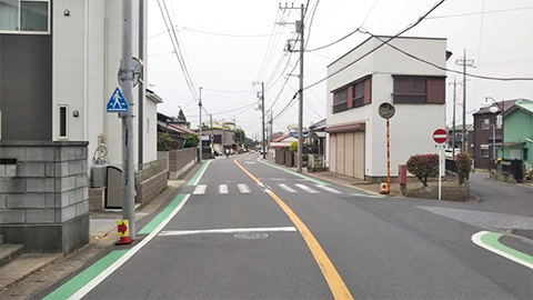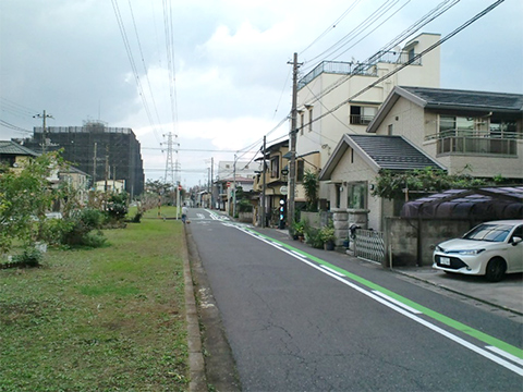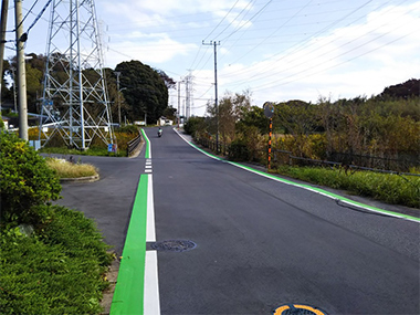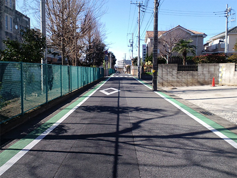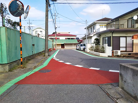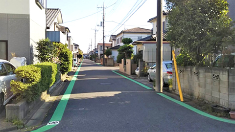 その結果、平成28年度に「千葉市通学路のカラー化計画」が策定され、市内全111校を対象に、学校から半径500メートル範囲にある“歩道のない通学路”のカラー化が進められております。