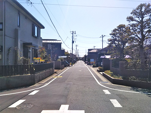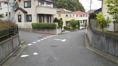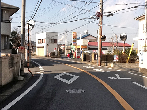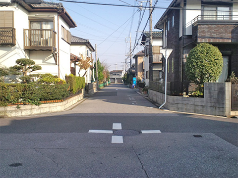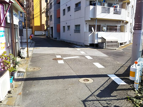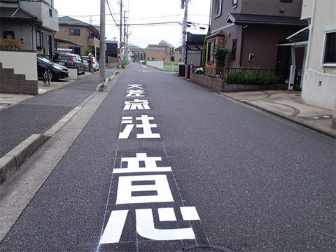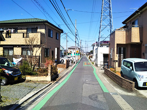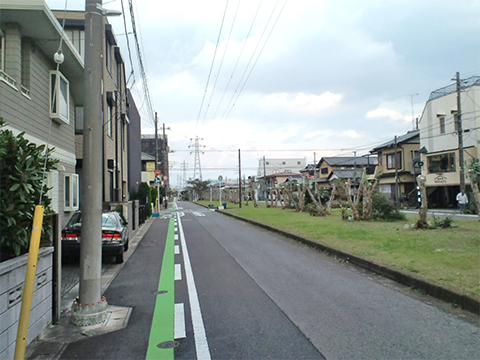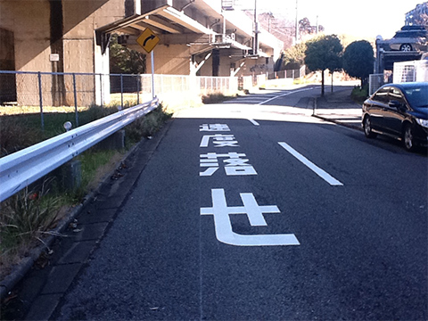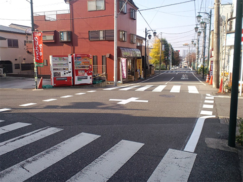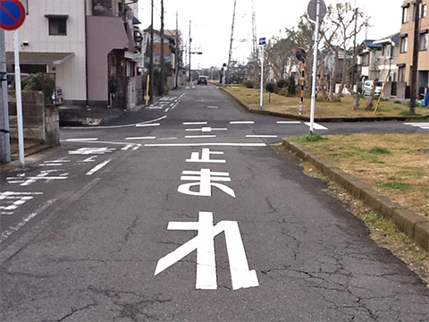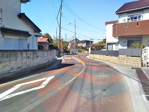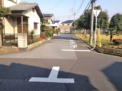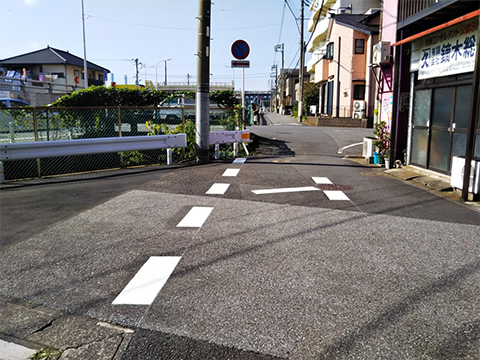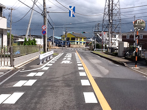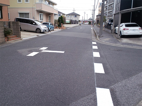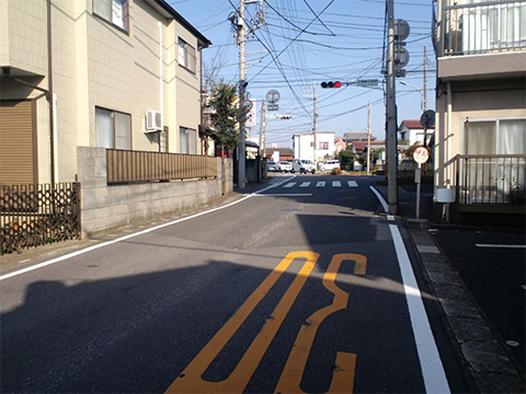 白旗交番前交差点~蘇我ロイヤルコンフォート前の路面表記
