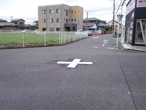 浜野駅西口 浜レジ周辺一帯の路面表記