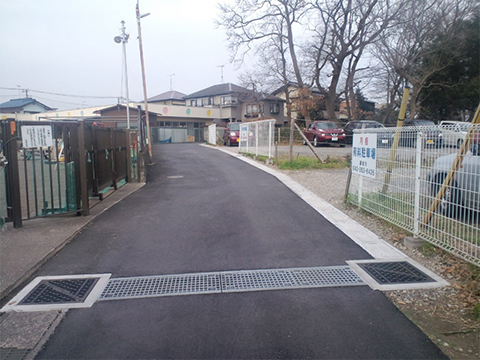 川戸中学校前の歩道舗装、側溝清掃(水たまり対策)