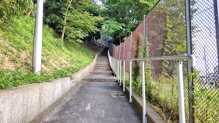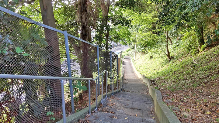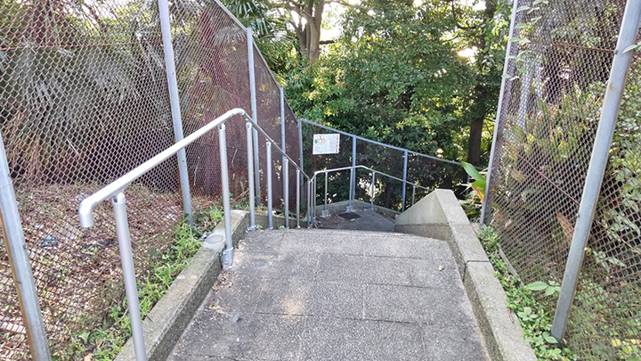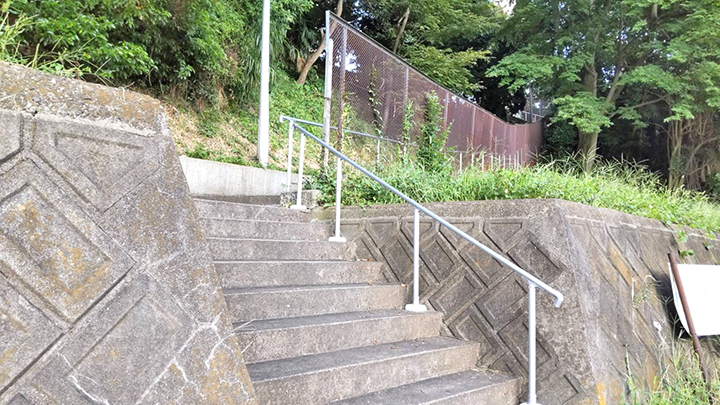 昨年8月、白旗団地からスーパーマルエツのある南町に抜けるこの階段通路に手すりが設置されました。