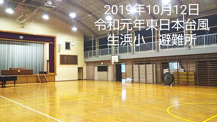 2019年の令和元年東日本台風。避難所となった生浜小学校(体育館)に駆けつけた際の感想は、「(10月なのに)想像以上に暑い!」でした。