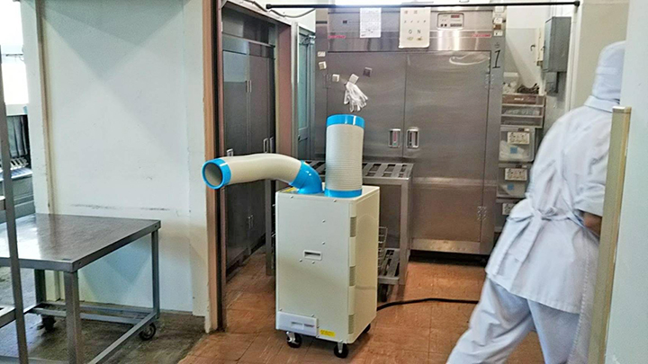 そこで、(他市の取組みを研究するなか)提案したのが移動式の仮設冷房機(スポットクーラー)。格段に安価で導入できる空調設備で、翌年度(2020年度)には早速「モデル実施」として2校分の予算が確保され、同年(2020)7月には、(予備費を活用し)一気に2校から174校に拡大されました。