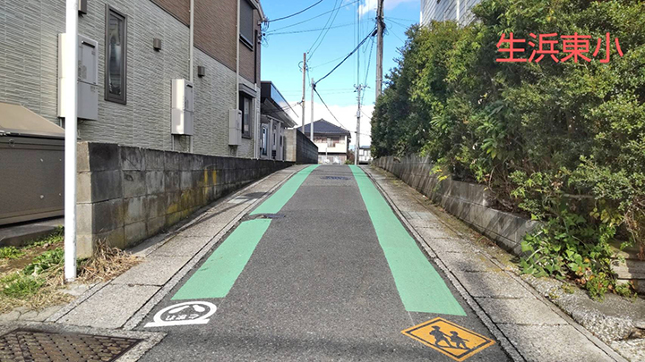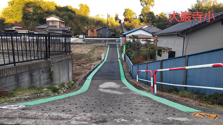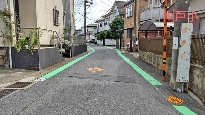 子どもたちはグリーンの線の上を歩き、ドライバーには注意を促すなど、効果は高いと言われております。